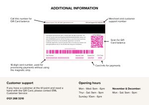 Above: An example cheat sheet for the Wolverhampton City Centre Gift Card